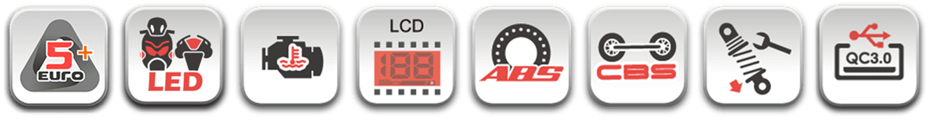 The new 5-inch color LCD dash contains the basic info usually seen on other SYM models: vehicle and engine speed, clock, battery voltage, coolant temperature gauge (125 liquid cooled), fuel gauge, side stand indicator, trip meters . Moreover, it integrates ambient temperature display that benefits daily use a lot.